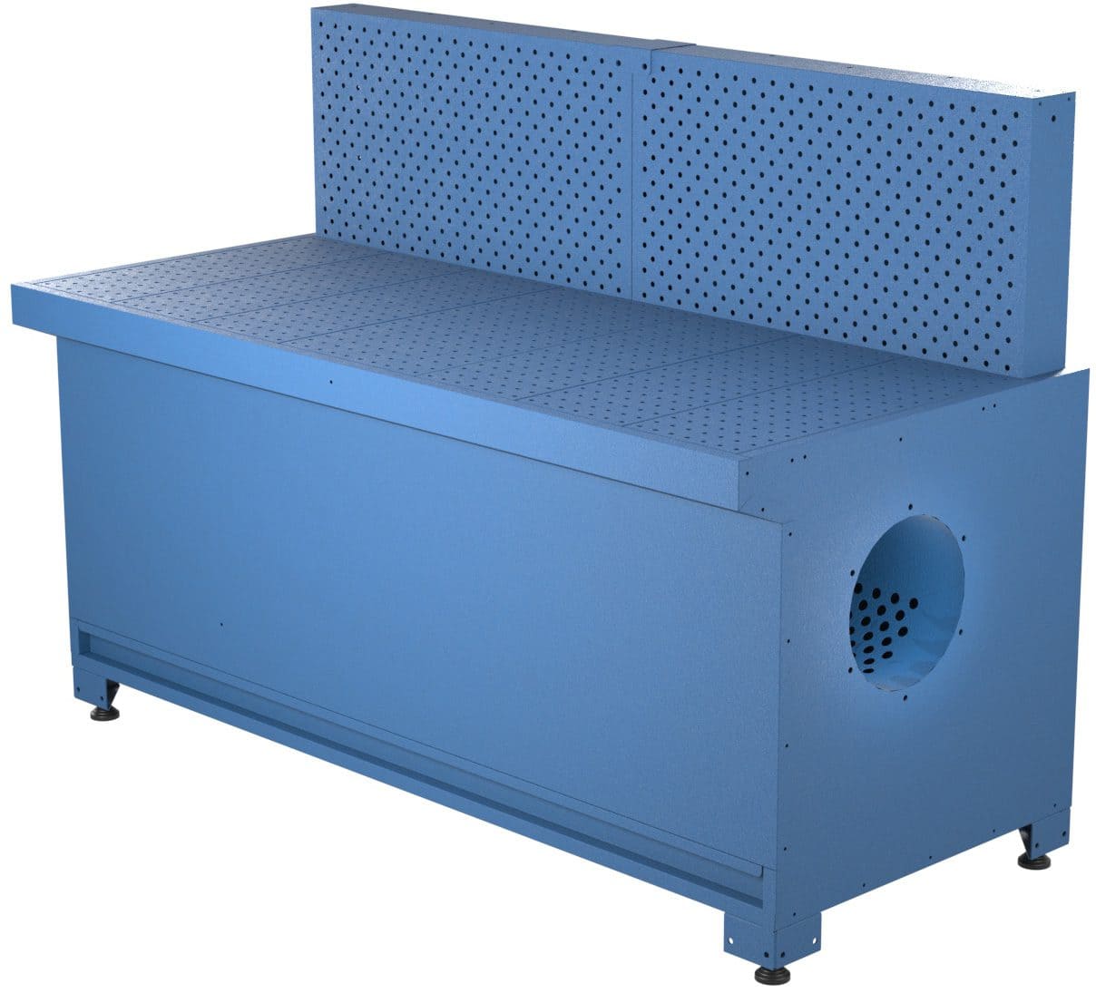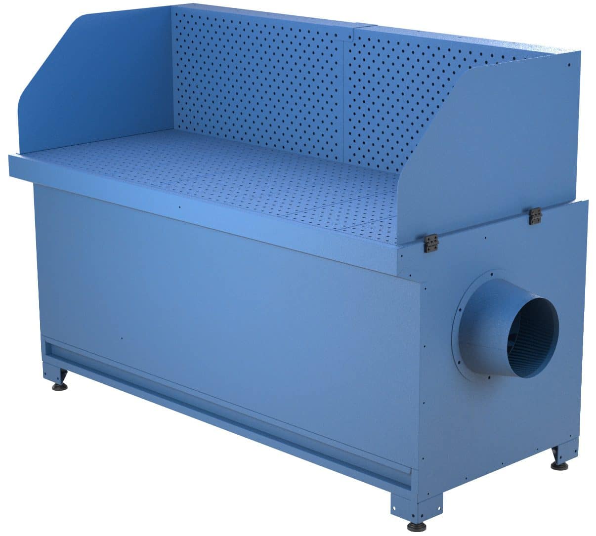 The GEB is a robust downdraft bench designed to connect to a centralised extraction system. Built for heavy industrial use, it captures dust and fumes directly at the source without internal filtration, ensuring reliable performance and easy integration into larger setups. Its simple, durable construction with adjustable feet and dust drawers makes it a practical solution for a wide range of grinding and welding tasks.
