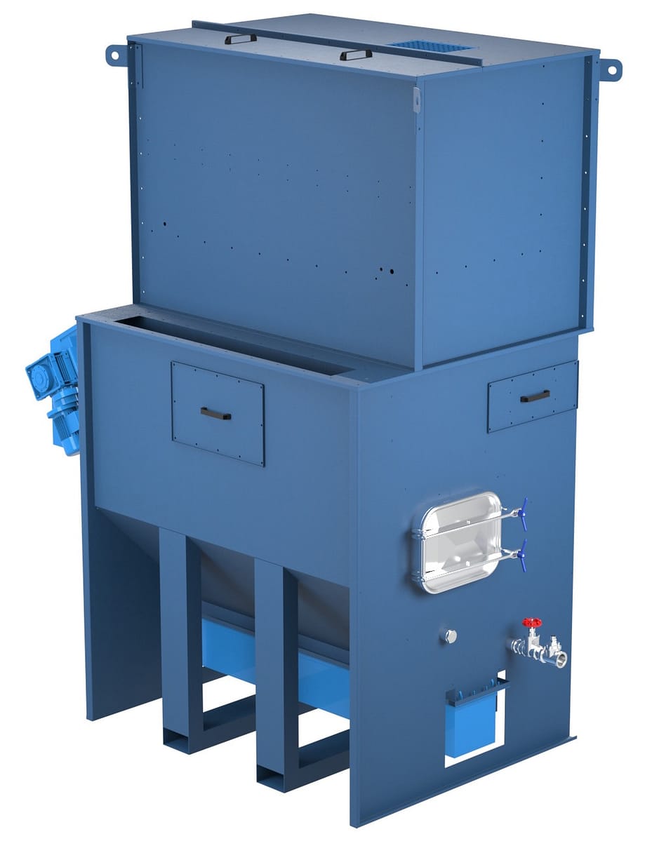 The GEF GWF Wet Dust Collector is designed to capture dust and airborne contaminants using a water-based filtration process. Polluted airflow enters the collector and passes through a water bath where particles are captured before the cleaned air continues through the system. Automatic water level control and integrated fan systems ensure consistent performance while reducing maintenance requirements. Supplied fully assembled with a soundproofed fan enclosure and control panel with VSD, the GWF provides reliable wet filtration for demanding industrial applications.