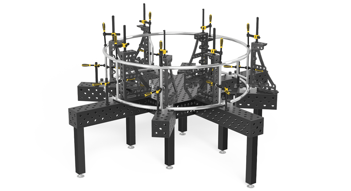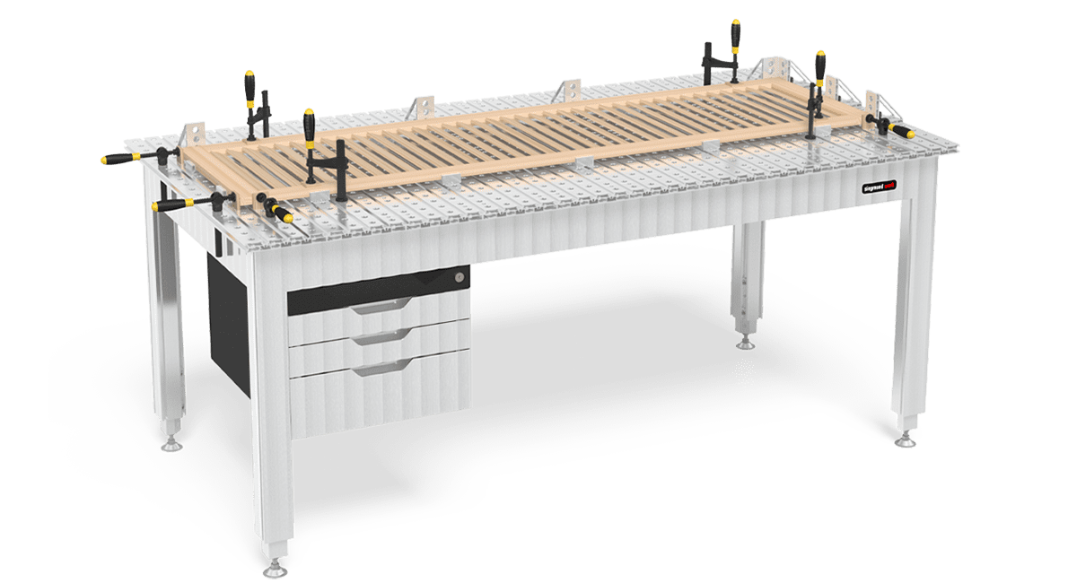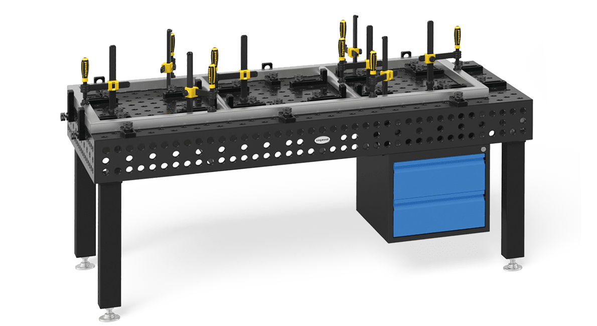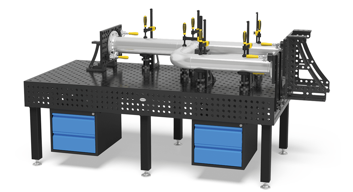 Innovative solutions for clamping and fixing workpieces on Siegmund welding tables. Siegmund Clamps, available at MPAC, ensure precise fixation for welding and assembly tasks. These versatile clamps allow quick, secure positioning and come in various sizes and styles, including fast clamps and screw versions. Ideal for standard components or custom attachments, they integrate seamlessly across a wide range of applications.