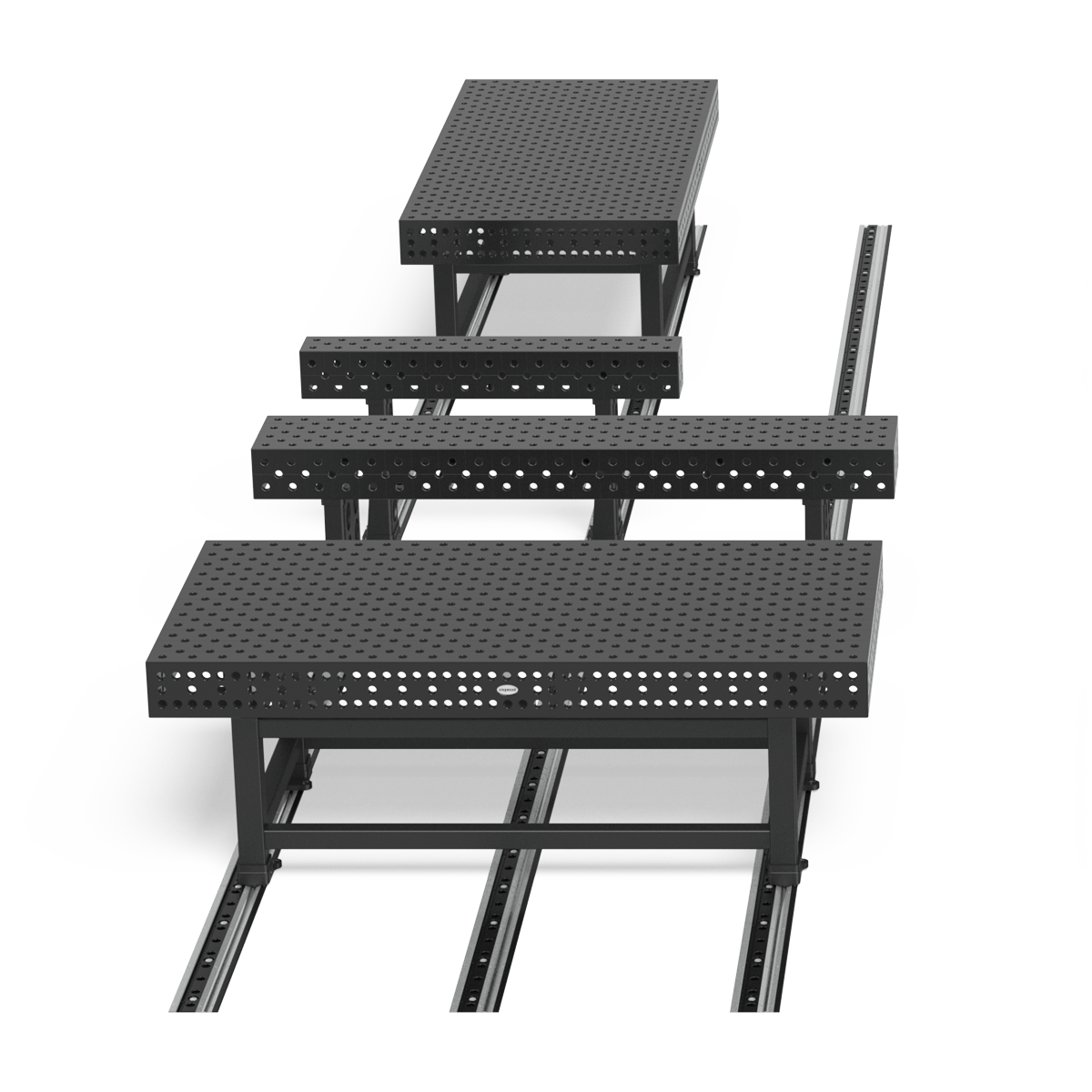 The Connecting Frame in combination with the table top can be randomly positioned on the foundation rails. By cross linking several connecting frames and foundation rails, extremely large objects can be handled efficiently. The use of square pipes in the design of the Connecting Frame ensures stability and high quality.