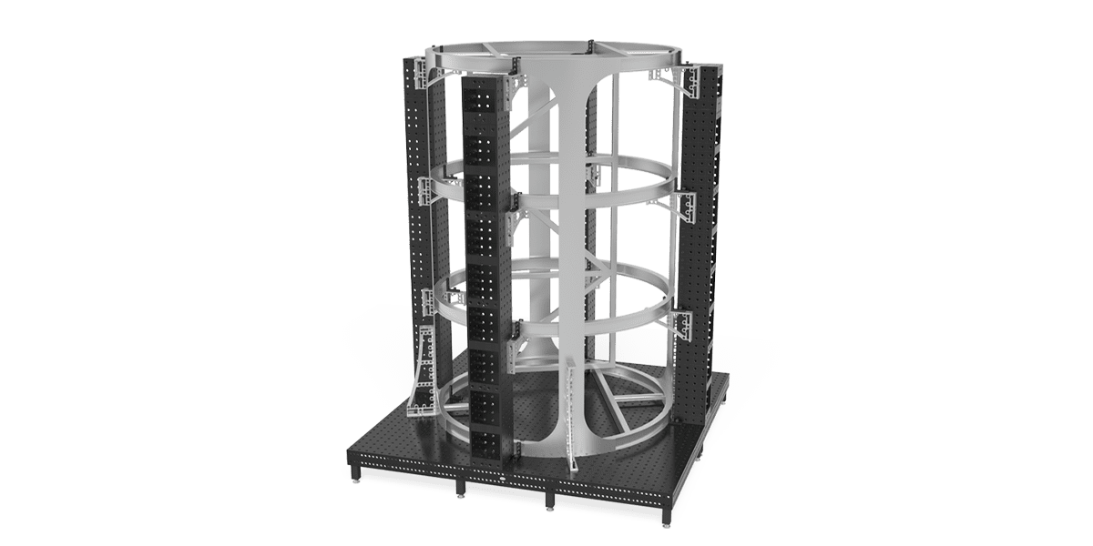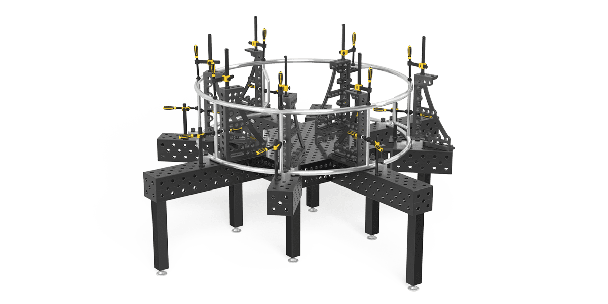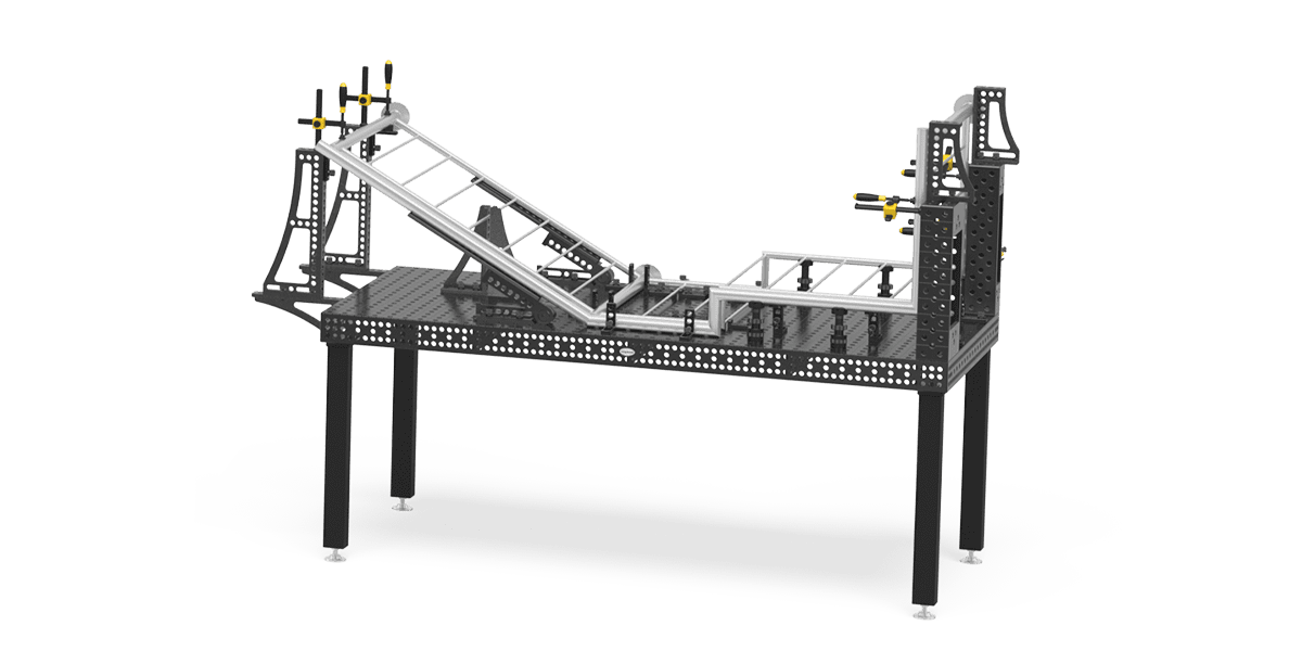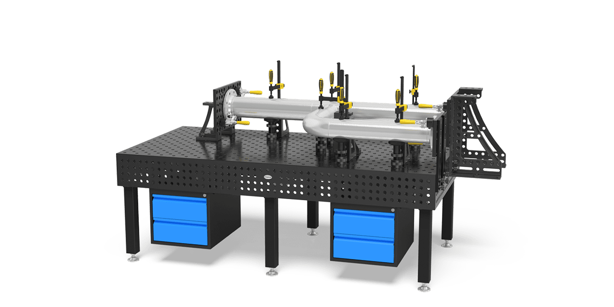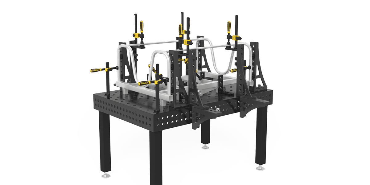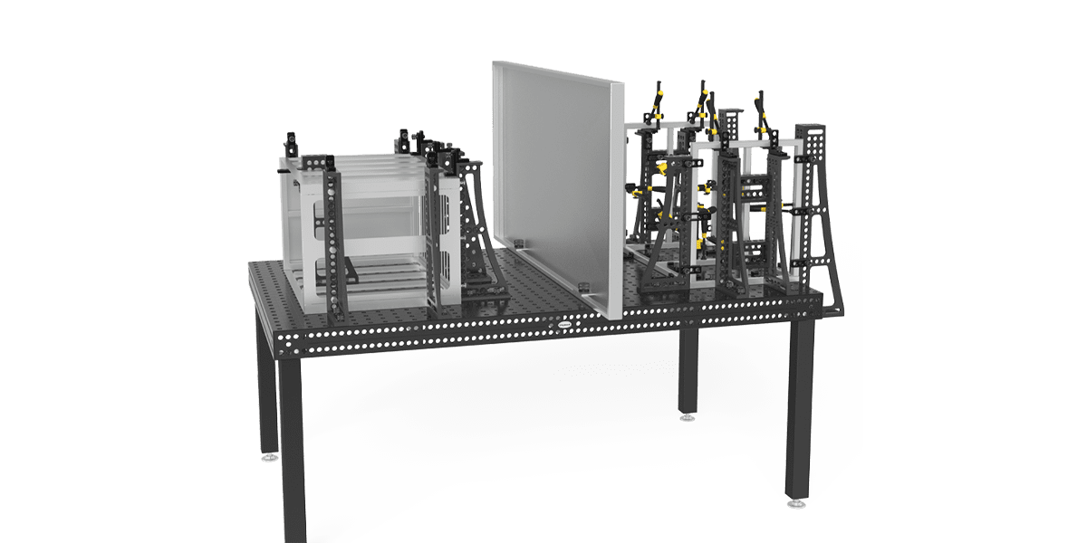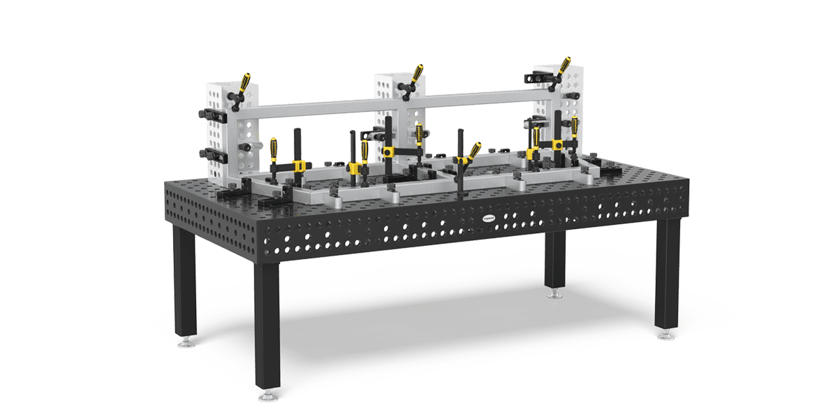 Our largest system is ideal for light to heavy workpieces due to its high resilience and rigidity. The solid clamping devices also keep large components in shape and prevent distortion when welding the individual assemblies.